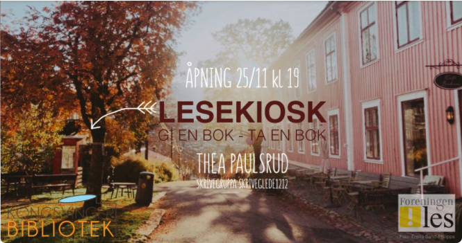 Torsdag 25. november kl.19 er det offisiell åpning av lesekiosken Herdahlparken. Thea Paulsrud skal spille et par låter, og medlemmer av Skriveglede1212 skal lese korte tekster.