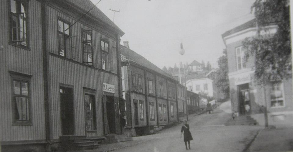 Nærmest handelshuset til landhandler Balchen og den gamle vertshusgården på hjørnet av Storgata og løkkegata